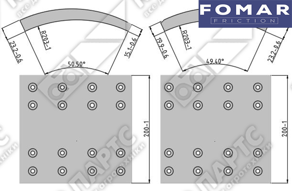 Накладки тормозные 1906302 2 РЭС DAF D424ММ FOMAR 65208720A8RV